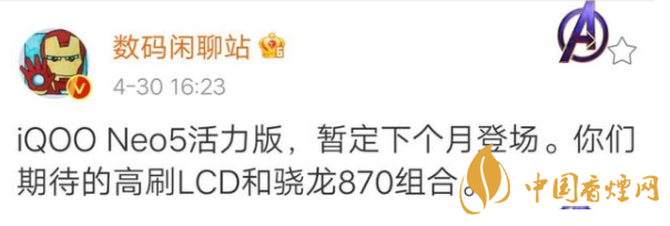 今年最受歡迎的手機處理器不是驍龍888,也不是天璣1200,而是驍龍870!最近,根據(jù)著名的數(shù)字博客聲稱,iQOO新機已得到確認,正式命名為iQOO Neo5活力版,預(yù)計將于5月份首次亮相!今天小編整理了有關(guān)iQOONeo5活力版手機怎么樣信息,下面跟著小編來一起了解一下吧。