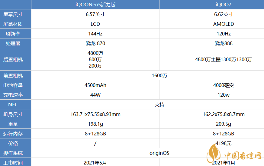 以上就是香煙網(wǎng)小編為大家?guī)淼腝OONeo5活力版和iQOO7參數(shù)配置對比相關(guān)資訊,以上資訊全來自網(wǎng)絡,更多最新最實用的資訊請持續(xù)關(guān)注香煙網(wǎng)。