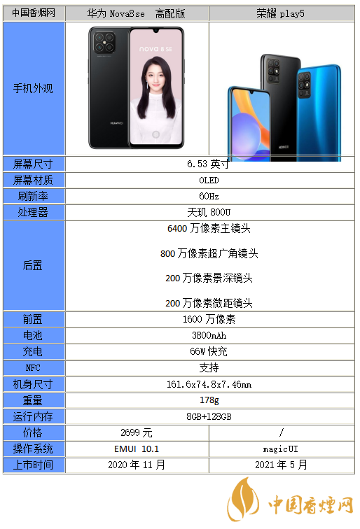 以上就是小編收集到的榮耀play5和華為nova8se高配版本區(qū)別在哪-應該買哪個的相關內容,以上內容均來源于網絡,僅供參考,一切以實際為準,更多最新數碼資訊請關注香煙網。