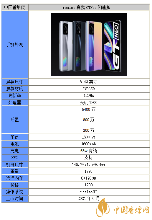 以上就是小編收集到的真我GTNeo閃速版手機(jī)怎么樣-真我GTNeo閃速版手機(jī)參數(shù)詳情的相關(guān)內(nèi)容,以上內(nèi)容均來源于網(wǎng)絡(luò),僅供參考,一切以實(shí)際為準(zhǔn),更多最新數(shù)碼資訊請(qǐng)關(guān)注香煙網(wǎng)。