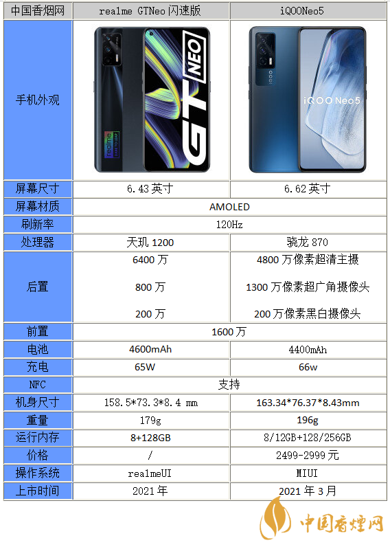 以上就是小編收集到的真我GTneo閃速版和iQOONeo5買哪款-參數(shù)對(duì)比的相關(guān)內(nèi)容,相信您看到了這里對(duì)這件事也已經(jīng)有所了解了,但是小編需要提醒的是以上內(nèi)容均來(lái)源于網(wǎng)絡(luò),僅供參考,一切以實(shí)際為準(zhǔn),更多最新資訊請(qǐng)關(guān)注香煙網(wǎng)。