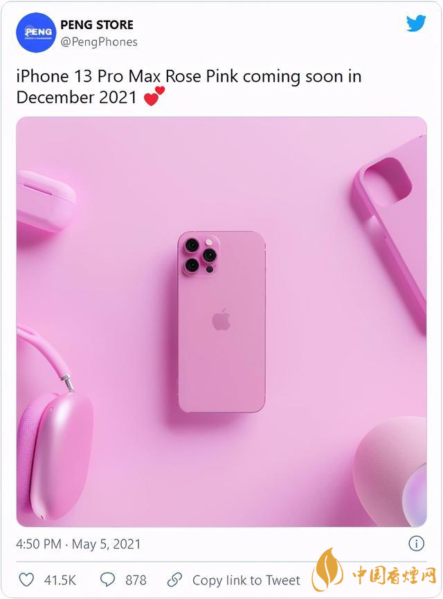 近日, Twitter上流傳著一張疑似粉色 iPhone 13的照片,而事實上,這則傳言可能成為了現(xiàn)實。五月五日,一個叫 Peng Phones Twitter的賬號發(fā)布了一幅粉色的 iPhone 13 Pro Max渲染圖片,這幅圖片看起來就像是那些給我們帶來“美感” iPhone家庭屏幕的人所創(chuàng)作的,被稱為“玫瑰粉色”(Rose Pink)。