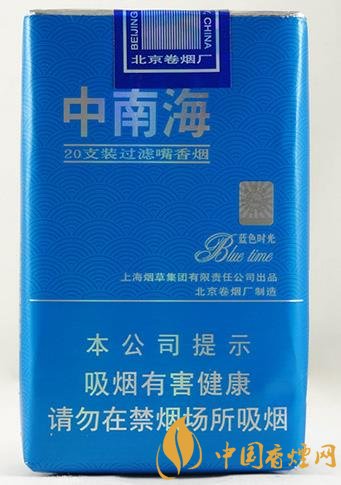 這款煙所含的焦油量為7mg,中南海除了“濃味”和“軟精品”之外,其他產品都是軟盒包裝的。估計是因為濃味售價不高、軟精品產量有限,北京卷煙廠軟包生產線的潛力沒有被完全發(fā)揮出來,所以這包藍色時光的開發(fā)才被提上日程的吧? 通體純藍、帶波浪底紋的煙盒很是清爽。
