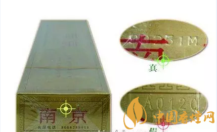 真品香煙鋼印的字母或數(shù)字排列一般有高有低、凹凸不平,字母或數(shù)字間距參差不齊,特別是字母和數(shù)字之間的間距一般明顯較大,因為真煙鋼印是機器在包裝生產(chǎn)線上動態(tài)打印的,所以鋼印排列是不規(guī)則的。而因為假煙一般是印制商標紙后就模仿真煙把鋼印打好,鋼印是在靜態(tài)情況下打印,所以假煙鋼印一般較整齊一致,間距相等、大小粗細相同。