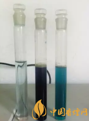 左二黑色瓶為收集煙氣后情況(濃度太高,超出儀器讀數(shù)范圍) 左三藍(lán)色瓶為經(jīng)過加水稀釋后做實(shí)驗(yàn)的樣品。