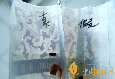 真品煙支接裝紙采用兩排清晰可見的降焦打孔;假煙煙支接裝紙無降焦打孔,與真品工藝存在顯著差異。