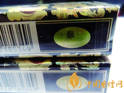 真品小盒正反面均采用具有黃色、紅色、紫色、藍色和綠色等干涉色的效果珠光油墨,在不同光線角度下會呈現(xiàn)出不同顏色,同時也具有能阻止掃描儀、電分機及彩色復(fù)印機的復(fù)制功能;假煙在不同光線角度無法呈現(xiàn)出彩色光線變化,因多采用高清掃描復(fù)制,其圖片多邊緣呈現(xiàn)顆粒粗大的網(wǎng)格狀,與真品材質(zhì)存在顯著差異。
