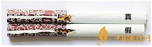 真煙采用機(jī)器燙封一次成型,封口較平整,拉線頭為規(guī)則的半橢圓形,右側(cè)垃圾桶圖示上方“方塊”筆畫較粗;假煙一般采用手工電烙鐵燙封,封口起皺較大,拉線頭形狀不規(guī)則,右側(cè)垃圾桶圖示上方“方塊”筆畫較細(xì)。
