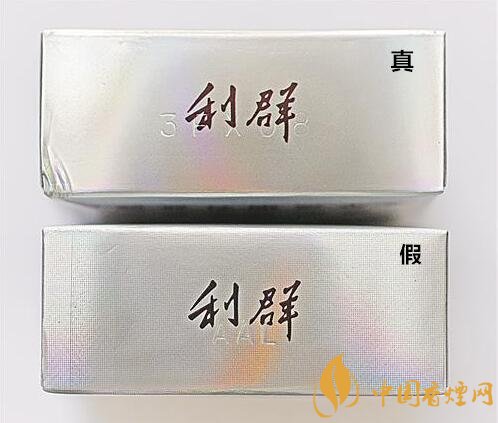 真煙商標(biāo)紙采用噴鋁紙、膠印和絲網(wǎng)印刷,“利群”及拼音字體采用燙銀工藝,字體筆畫豐滿套印準(zhǔn)確,用手摸沒(méi)有凹凸感,且字體筆畫上及商標(biāo)紙銀色部分無(wú)細(xì)小網(wǎng)格狀;假煙采用高清掃描仿制印刷,“利群”及拼音字體凹凸感較明顯,且套印有偏差,字體筆畫上及商標(biāo)紙銀色部分均有細(xì)小網(wǎng)格狀。