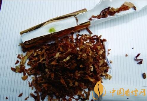 真品煙絲原料所用煙葉的選出率為200公斤精選出1公斤,每片煙葉都十分珍貴,并在湖北隨州、恩施原生態(tài)環(huán)境下5年以上的自然醇化,切絲寬窄均勻,煙絲油潤性好,顏色呈金黃色,采用“南洋煙魁壹號配方”配制而成;假煙煙絲采用低劣的煙葉原料,經(jīng)過硫黃等化學(xué)藥劑熏烤加工而成,煙絲末多塊大,化學(xué)香精味濃,與真品工藝存在顯著差異。