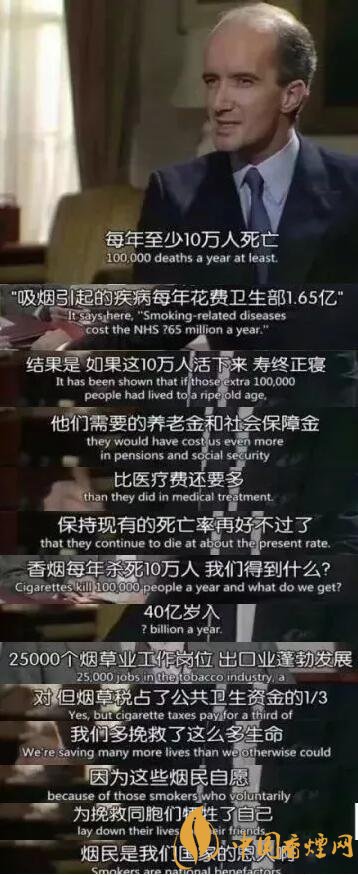 香煙行業(yè)的發(fā)展,除了繳稅方面貢獻極大之外,在緩解我國的社保壓力方面,也有很大的貢獻。給大家一個笑話,大家自己體會下,在英劇《是,首相》中,有這么一段對話,犀利而幽默: