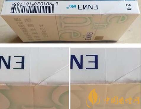 (4)真品卷煙“enne”小寫字母筆畫立體感強(qiáng)。該款假冒卷煙小寫字母筆畫無立體感。
