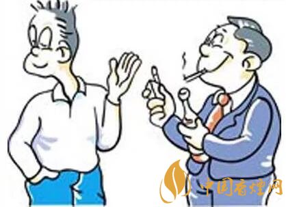 (2)吸煙時(shí),不應(yīng)一直吸到燒手或吸到過(guò)濾嘴邊緣;不應(yīng)將煙霧向別人直噴過(guò)去;不應(yīng)從鼻孔里往外吐煙;不應(yīng)走著路吸煙;不應(yīng)把煙夾在耳朵上;也不應(yīng)在電扇和空調(diào)的上風(fēng)吸煙。如果對(duì)方不吸煙,而向你讓煙,此時(shí)最好不要吸煙。