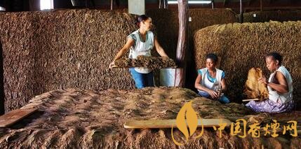接下來是第二道工序,把葉片取下來后分類,將其堆成一米高左右,覆上麻布利用葉片中殘存的水份引發(fā)初次發(fā)酵。這道工序目的是使煙葉的顏色更為一致,但關(guān)鍵是要在35-40天內(nèi)把溫度控制在35度以下。這2到3個月里所有工藝最大的作用在于將茄衣的含油量和色澤控制在理想的范圍內(nèi)。