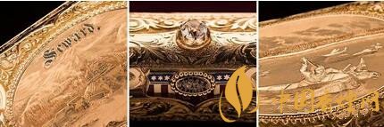 雪茄盒主體由黃金制作,細(xì)節(jié)上包括刻字SEWARD,一顆寶石和美國國旗圖案,以及美國原住民婦女的狩獵場景。一筆最重要的交易,一段歷史就完整的呈現(xiàn)在一個(gè)雪茄盒上了。想要了解更多內(nèi)容請點(diǎn)擊:西班牙代理商推出了中國豬年高希霸生肖雪茄