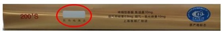“中華”(雙中支)產(chǎn)品條盒側(cè)面有電子變軌防偽涂層:條盒側(cè)面防偽檢測點白色區(qū)域刮擦后呈現(xiàn)藍(lán)色,一段時間后藍(lán)色褪去。