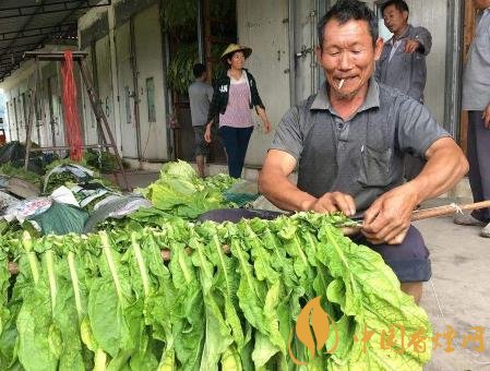 當(dāng)煙葉有綠色變?yōu)榈S,用手捏一下特粘時(shí)即可收獲。用煙刀每個(gè)葉帶煙拐割下后,在對置一天后即可上繩上架晾曬,在晾曬時(shí)要每隔幾天翻動一次,使里外煙葉都曬成黃紅色,提高煙葉質(zhì)量。