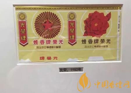 ——光榮牌,1951年國營中華煙草公司創(chuàng)牌,品名意為“志愿軍光榮”。煙標(biāo)早期以和平鴿與田野、工廠為圖案,后改為一朵鮮艷的大紅花。……