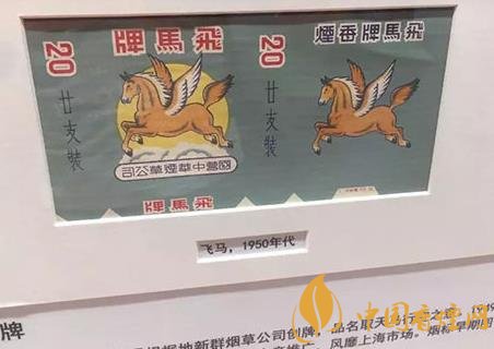 ——“飛馬”(上世紀(jì)50年代出品),1943年淮南抗日根據(jù)地新群煙草公司生產(chǎn),煙標(biāo)早期圖案為帶翅膀的飛馬。 1949年,國營中華煙草公司以“解放區(qū)名煙”對其進(jìn)行推廣,風(fēng)靡上海市場。煙標(biāo)后來改為騰空躍起的棗紅駿馬。