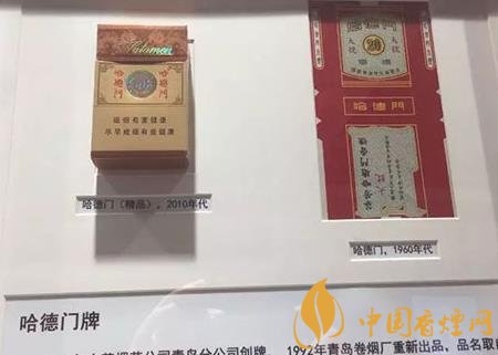 哈德門牌,1992年青島卷煙廠重新出品。品名取自北京崇文門的別名。煙標(biāo)以隸書“哈德門”及“HATAMEN”標(biāo)記為主圖案。