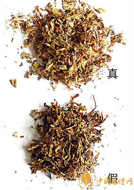真品卷煙煙絲采用復(fù)烤工藝,無煙梗等雜質(zhì),色澤淡黃、光潔油潤(rùn);假冒卷煙煙絲粗制濫造,雜質(zhì)較多,色澤暗淡、氣味刺鼻。