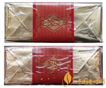 真品卷煙:1.封簽圖案印刷清晰,圖案及線(xiàn)條顏色明亮,線(xiàn)條印刷粗細(xì)相同。2.鋁箔紙顏色金色深,凹點(diǎn)均勻,距離適中。