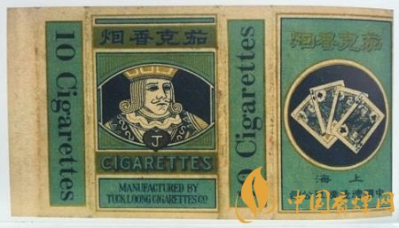 整幅煙標(biāo)由湖綠顏色擔(dān)當(dāng)主色調(diào),配以藏青色和金色,輔以撲克牌不同花色圖案形成的彩色,洋味很濃,幾可亂真是舶來品。10支裝的卷煙規(guī)格,在當(dāng)時是頗為流行且較普遍的一種卷煙規(guī)格。