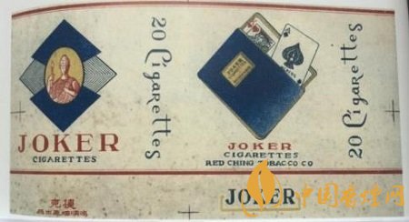 二十世紀(jì)四十年代,鴻順煙廠出品了“JOKER”卷煙,即“捷克”卷煙,此“捷克”非彼捷克(捷克斯洛伐克)。捷克煙標(biāo)只是“JOKER”的直譯音,而“JOKER”英意譯為“小丑”,也就是撲克牌中的百搭,大小怪,與捷克國家毫不相干。煙標(biāo)正版上橢圓形框,似覆在菱形花紋撲克牌的背面上,其內(nèi)為一個中世紀(jì)衛(wèi)士的肖像,并不是小丑的相貌。副版上畫有一個傾斜的藍(lán)色紙牌套子,套內(nèi)呼之欲出一些撲克牌,面上兩張分別是黑桃“A”和紅桃“K”牌面,即一副撲克牌中牌面點數(shù)的最大數(shù)和最小數(shù)。而在橋牌中,撲克牌“A”確是最大的。當(dāng)然,不同的撲克牌游戲,有其不同的游戲規(guī)則。鴻順煙廠設(shè)計“捷克”煙標(biāo),取百搭大小王及其這兩張牌面作為煙標(biāo)的主角,自有他的設(shè)計理念和商業(yè)用意,或許迎合當(dāng)時人們的喜好,或是市場競爭的需要,在此,看者只能揣摩,不加定論。