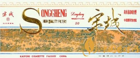 上世紀80年代,開封卷煙廠出品的“宋城”煙標,則采用廣闊的全景畫表現(xiàn)形式,選取了該畫作的后半部分:只見高大的城樓兩側的屋宇鱗次櫛比,街市行人摩肩接踵;士農工商、男女老幼、三教九流,無所不備。