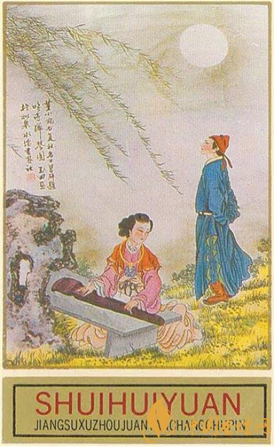 江蘇徐州卷煙廠出品于上世紀90年代的白底“水繪園”煙標,主版為水繪園遠景圖;副標展現(xiàn)的是:皓月當空之夜,明末清初文學家冒襄(字辟疆)佇立于幽雅寧靜、垂柳依依的水繪園中,聚精會神地傾聽秦淮名妓董小宛彈奏古箏的場景;側標印有相關文字介紹:“水繪園,中華園林之‘孤本’。明末四公子之一的冒辟疆,偕金陵名妓董小宛棲隱如皋水繪園。斯時,文人志士薈集其間,氣節(jié)風流,名動天下。”此外,我國火柴生產(chǎn)企業(yè)也出品過寄予“有情人終成眷屬”祈盼的火花。