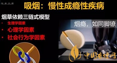 但是煙草成癮不是單單只有生理學(xué)因素,不然,中國(guó)就不會(huì)有3億吸煙者,不會(huì)十年吸煙率幾乎沒有變化。實(shí)際上,在戒煙的過(guò)程中,比克服生理學(xué)因素更難的是心理學(xué)因素和社會(huì)行為學(xué)因素。煙癮如同腳鐐,拴在人身上很難擺脫。