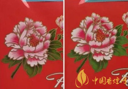 真品卷煙商標(biāo)紙上的牡丹花瓣的粉紅色采用漸變技術(shù),顏色由深逐漸到淺,自然協(xié)調(diào),立體感強(qiáng);假煙采用普通仿制技術(shù),粉紅色部分集中于一角,顏色搭配較為死板,立體感差。