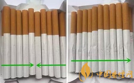 同一包卷煙內(nèi),真品卷煙煙支卷接紙有兩個(gè)相反的搭口方向;而假煙的煙支卷接紙搭口方向均為同一個(gè)朝向。