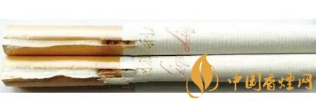 真煙煙支采用單一醋纖濾嘴,過濾嘴長度為25mm,卷煙紙上“liqun”字體筆畫較粗;假煙煙支過濾嘴長度稍短,約為24mm,卷煙紙上“liqun”字體筆畫較細(xì),與真品特征存在明顯差異。(上真下假)