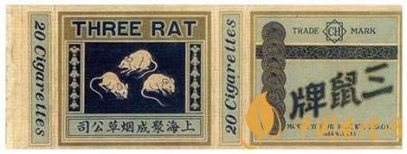 上海聚成煙廠出品于同期的“三鼠”煙標(biāo),凸顯了三只老鼠各具情態(tài)地仔細(xì)尋找食物的畫面。