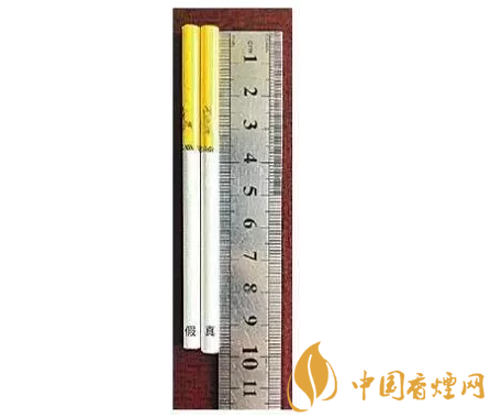 兩相比較,真煙的煙支明顯比假煙的煙支長。(左假右真)