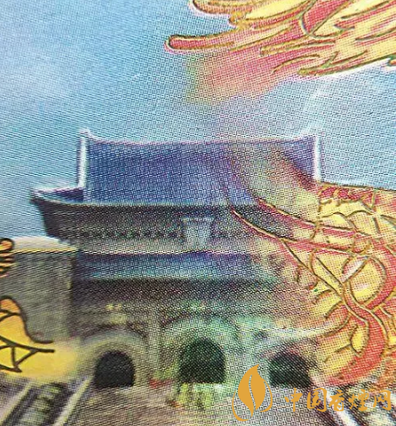 真煙小盒正面天空波浪紋、中山陵屋頂瓦片清晰連貫;假煙小盒正面天空波浪紋、中山陵屋頂瓦片模糊不清,時(shí)有時(shí)無。(上真下假)