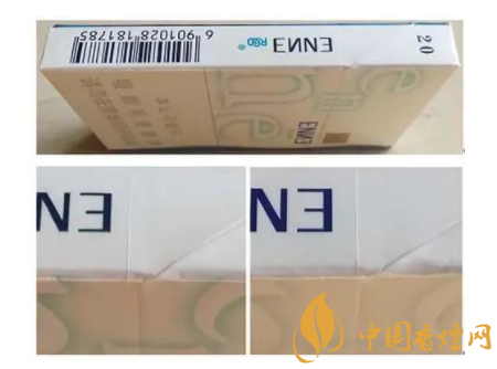 (2)真品卷煙深藍色“EN”字母商標凹凸處理,手摸凹凸感明顯。假冒卷煙商標未做凹凸處理,手摸平滑。