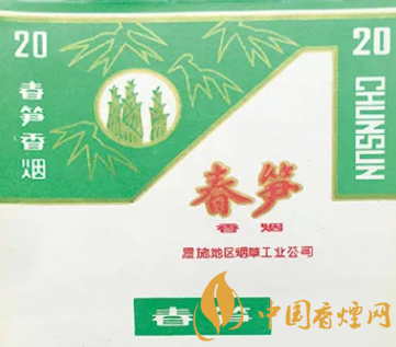 上世紀(jì)80年代恩施地區(qū)煙草公司出品過(guò)一枚“春筍”(圖1)煙標(biāo),于綠意盎然的綠底上用金色勾繪出數(shù)片竹葉的中間,在金色的圓圈內(nèi)則凸顯出三根嶄露頭角的春筍。