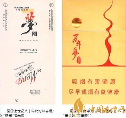 如新邵卷煙廠的“夢”(見圖①),菏澤卷煙廠的“金夢”(見圖②),貴定、海林卷煙廠的“夢圓”(見圖③),興義卷煙廠的“夢歸”,許昌卷煙廠的“夢幻”,安陽、當陽卷煙廠的“藍夢”,蓬安卷煙廠的“藍的夢”,綿陽卷煙廠的“九寨溝夢幻”,阜陽卷煙廠的“東方夢”,銅仁卷煙廠的“夢中情”,太原卷煙廠的“夢佳麗”,紅安卷煙廠的“夢之花”,四平卷煙廠的“夢妮”,鳳凰卷煙廠乾州分廠“夢斯”等。另一類是取材于古代文學作品和傳說。如南京卷煙廠的“夢都”,新晃卷煙廠的“紅樓夢”,鐘山卷煙廠的“夢”,廣水卷煙廠的“黃粱夢”,長春卷煙廠的“夢仙草”,許昌卷煙廠的“夢蝶”等。