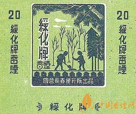 上世紀(jì)50年代,國營長春卷煙廠出品了“綠化牌”煙標(biāo)。這枚煙標(biāo)以綠色為底色,主版采用剪影的形式描繪了一幅植樹圖,畫面上一個人扶著樹苗,另外一個人揮鍬培土,不遠(yuǎn)處是已經(jīng)栽種好的一棵棵樹苗,在樹苗右上方,高大濃密的松樹如母親一般呵護(hù)著小樹苗;副版上印著“大家植樹 綠化祖國 護(hù)林防火 人人有責(zé)”的字樣。