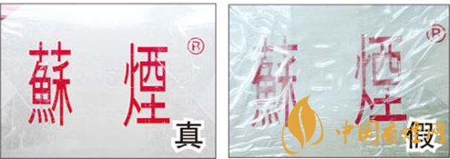 真煙燙金字體線條清晰、不漏金,金色部分成色純正;假煙燙金字體線條不清晰,有漏金現(xiàn)象,金色部分成色暗淡。