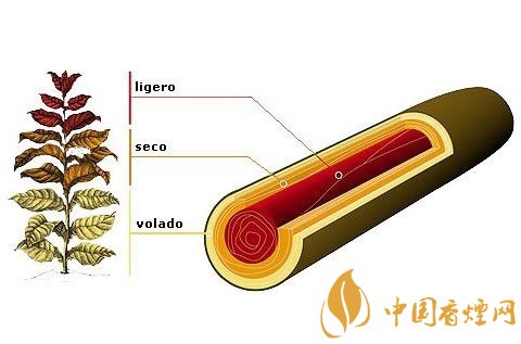 想了解雪茄香味的來源,我們需先了解雪茄結(jié)構(gòu)!這里以一支哈瓦那雪茄為例,基本需要五種類型的煙葉制成,每種類型均需特別種植,并按照特定目的制備。