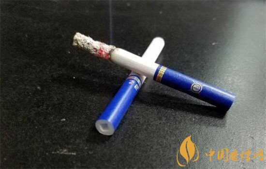 煙支設計我喜歡,煙嘴的變化非常大,深藍色的過濾嘴,獨有的方型鏤空濾嘴,完美取代了老版的溝槽濾嘴,既具個性,又顯時尚。碩大的爆珠標識印在過濾嘴處,稍顯浮夸??赡苁峭怀鰝€性的用意吧,濾嘴長34mm,沒有降焦孔。煙葉切割工整,質地也不錯。
