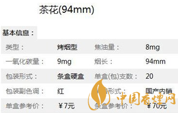 在了解了細(xì)支白盒茶花煙多少錢一包 之后,為了大家能更詳見(jiàn)的了解此煙,小編特意將茶花(94mm)香煙的核心參數(shù)進(jìn)行了整理,以便于對(duì)它進(jìn)行更深入的了解。