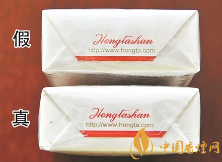 真煙透明紙燙封收縮均勻、自然,有烙鐵痕跡,商標紙拐角折疊空隙較大;