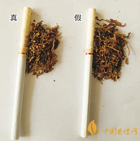 煙支及煙絲差異對比:正品卷煙煙支的水松紙顏色偏黃