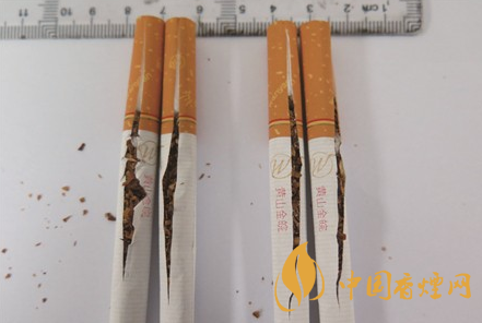 煙支降焦工藝差異對比:真品煙支采用25mm濾嘴棒長度,加長濾嘴棒長度能有效降低卷煙內的焦油含量;假煙采用18mm濾嘴棒長度,無法達到有效降低焦油含量的作用,與真品煙支降焦工藝存在明顯差異。