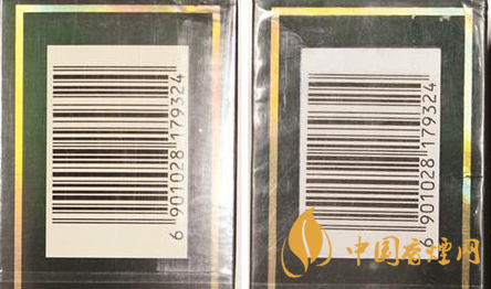 煙用包裝膜材質(zhì)及條形碼對(duì)比:真品卷煙條包裝膜材質(zhì)光滑,均勻無(wú)皺褶,條形碼區(qū)域呈淡黃色,套色均勻清楚。假煙條包裝膜材質(zhì)粗糙,有不均勻皺褶,條形碼區(qū)域?yàn)榘咨?,套色邊緣放大后模糊不清?/p>