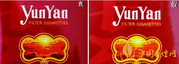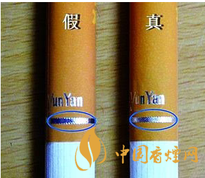 看商標紙背面“云煙”圖案:真品卷煙采用凹印印刷,圖案背景呈“梅花狀”游離點;假煙采用膠印印刷,圖案背景無游離點。